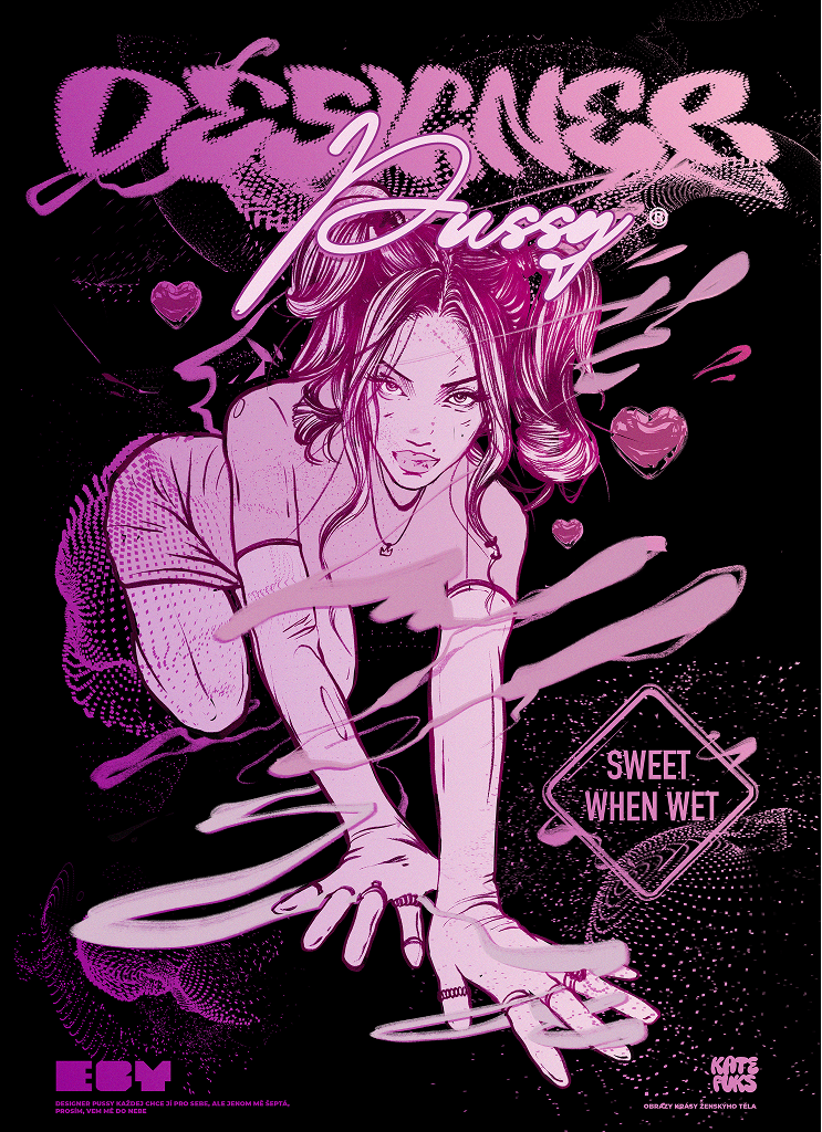 "Designer Pussy" plakát v tmavém a světlém designu